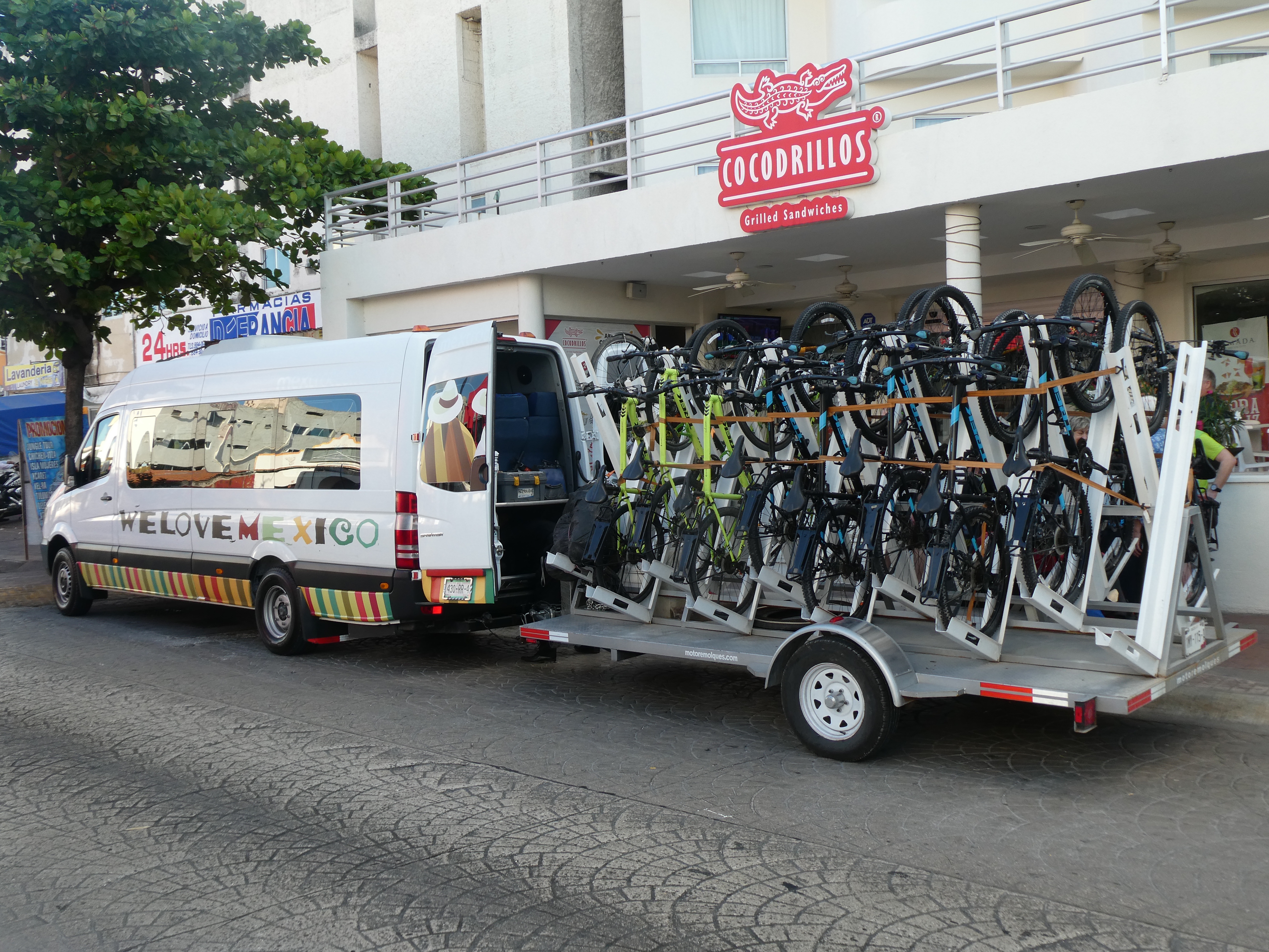 In Yucatán angekommen nehmen wir mit all unserem Gepäck ein Taxi und machen als erstes in der Hotellobby unsere Steven wieder fahrtüchtig.
