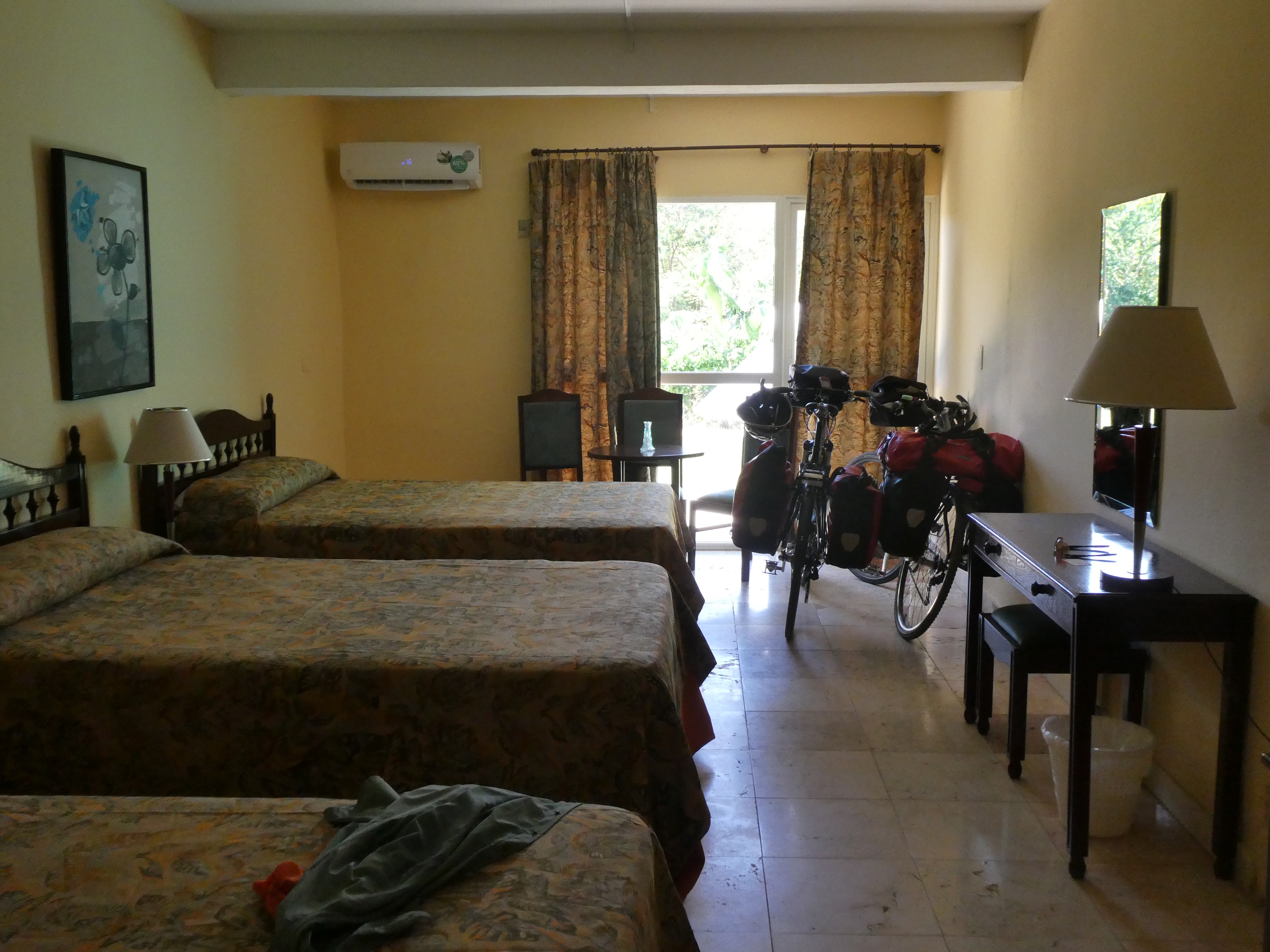 In Yucatán angekommen nehmen wir mit all unserem Gepäck ein Taxi und machen als erstes in der Hotellobby unsere Steven wieder fahrtüchtig.