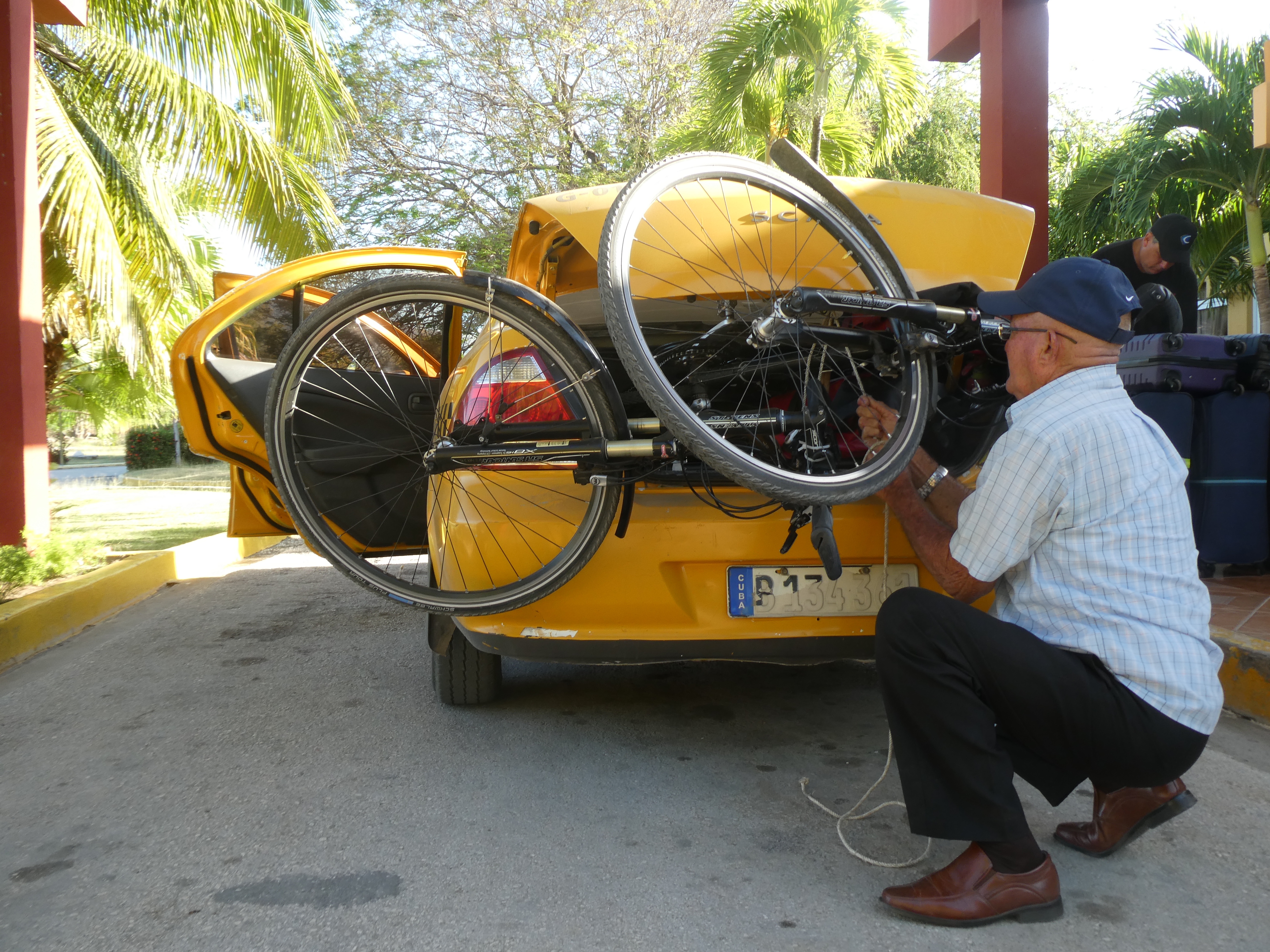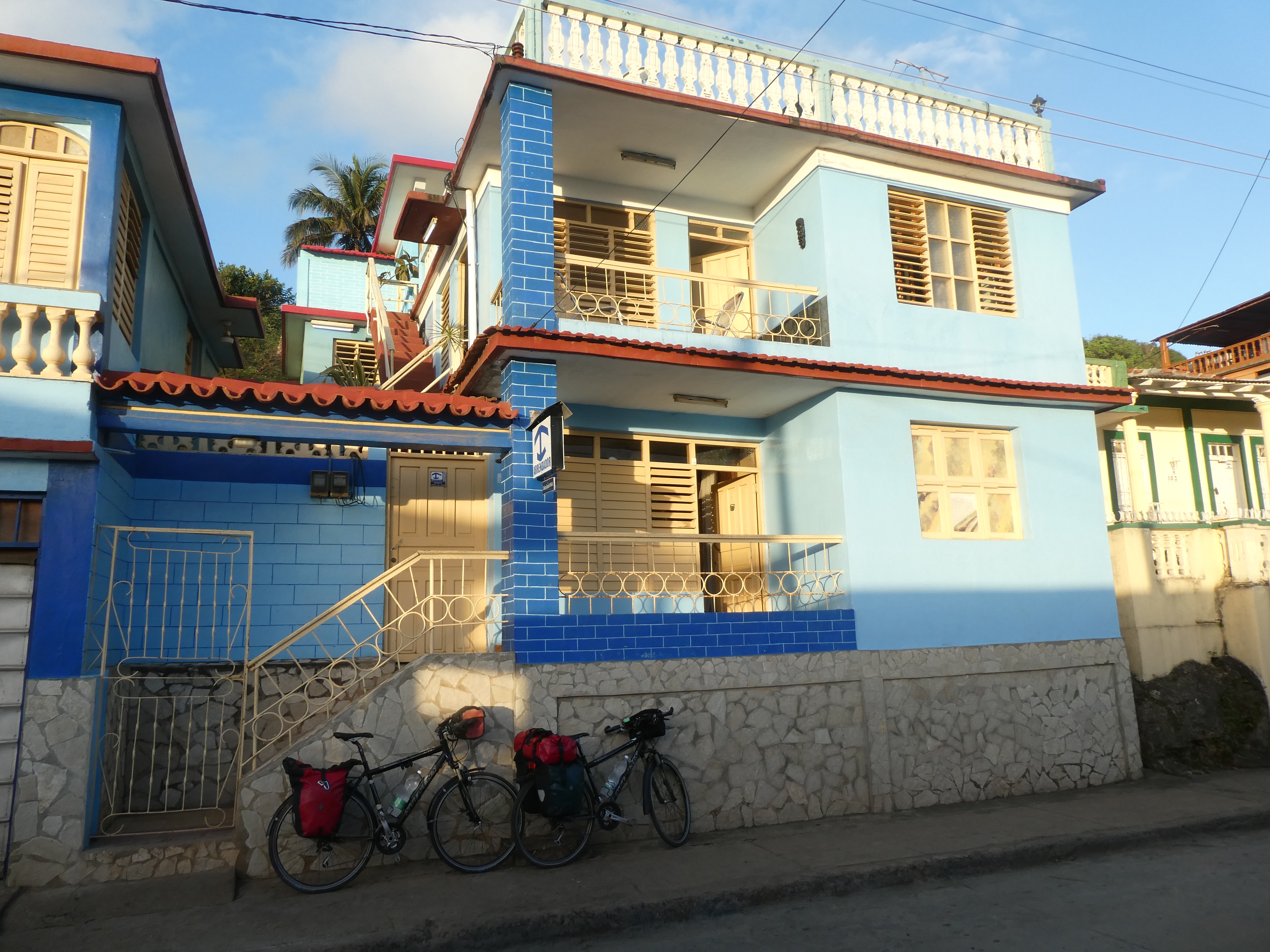 Das Reisen ist hier ganz einfach: in der Casa fragen, ob man jemand im nächsten Zielort kennt und schon haben wir ein neues Bett. In Santiago hatten wir zwar fünf Adressen, aber die letzte Casa hatte zwei Deutsche mit Rad angekündigt und so stand ein Biketaxi mit einem Schild an der großen Kreuzung der Stadtzufahrt und die Unterbringung der nächsten drei Tage war geklärt. Wir konnten uns nicht wirklich für Kubaner ausgeben und das Schild ignorieren.