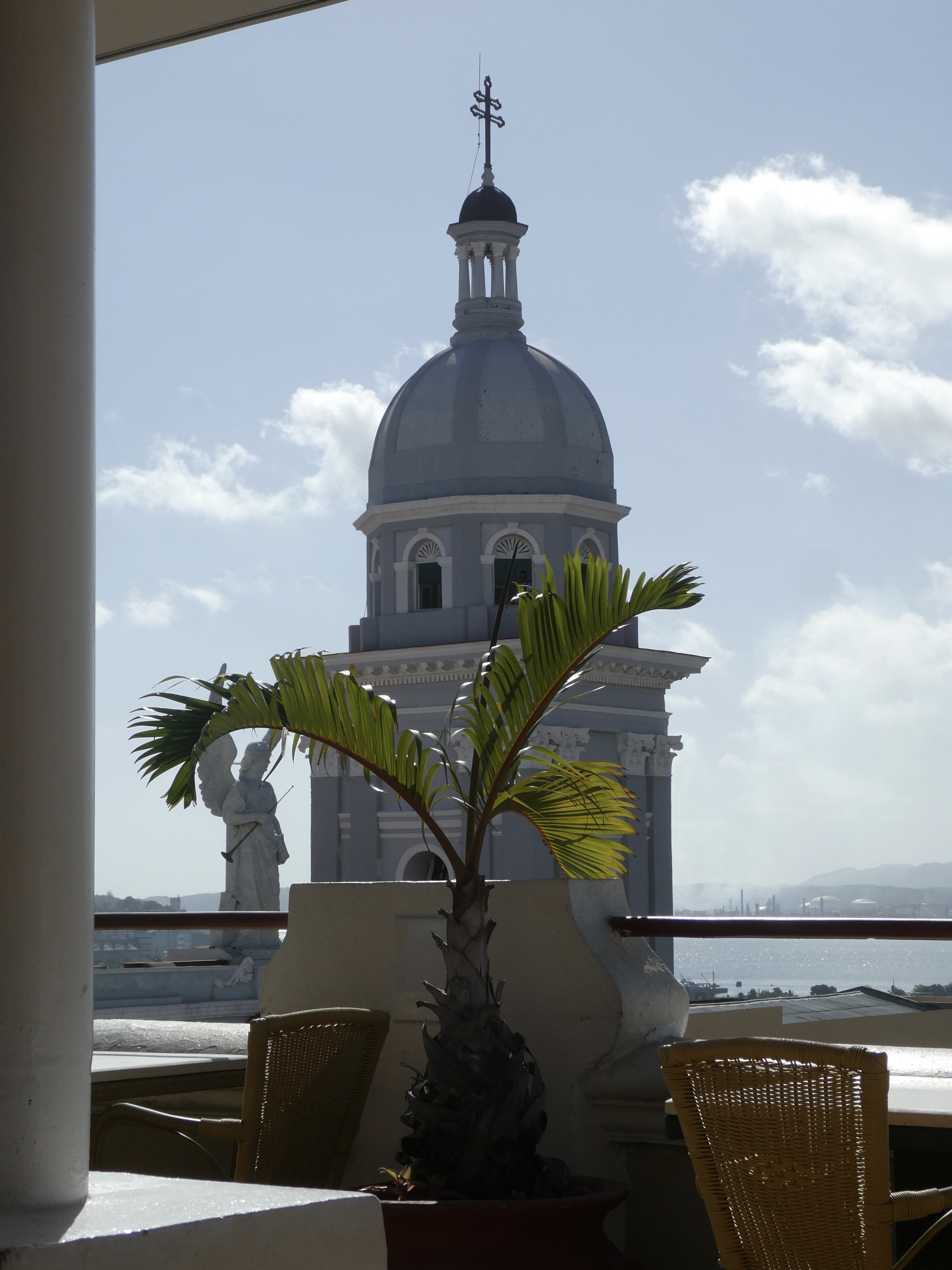 In Santiago konnten wir ganz angenehm die Stadt erkunden, eine Hafenrundfahrt machen, im Grandhotel den Terrassenblick genießen (wer sagt, er sei Hotelgast zahlt die überall in der Stadt üblichen Preise für Getränke), Kirchen besuchen, lecker Fisch essen, ein Museum besuchen (da hängen noch immer Bilder von E.Honecker und L.Breschniew), das Grab von Fidel besuchen und einfach endlos durch die Stadt schlendern (natürlich immer hoch und runter).