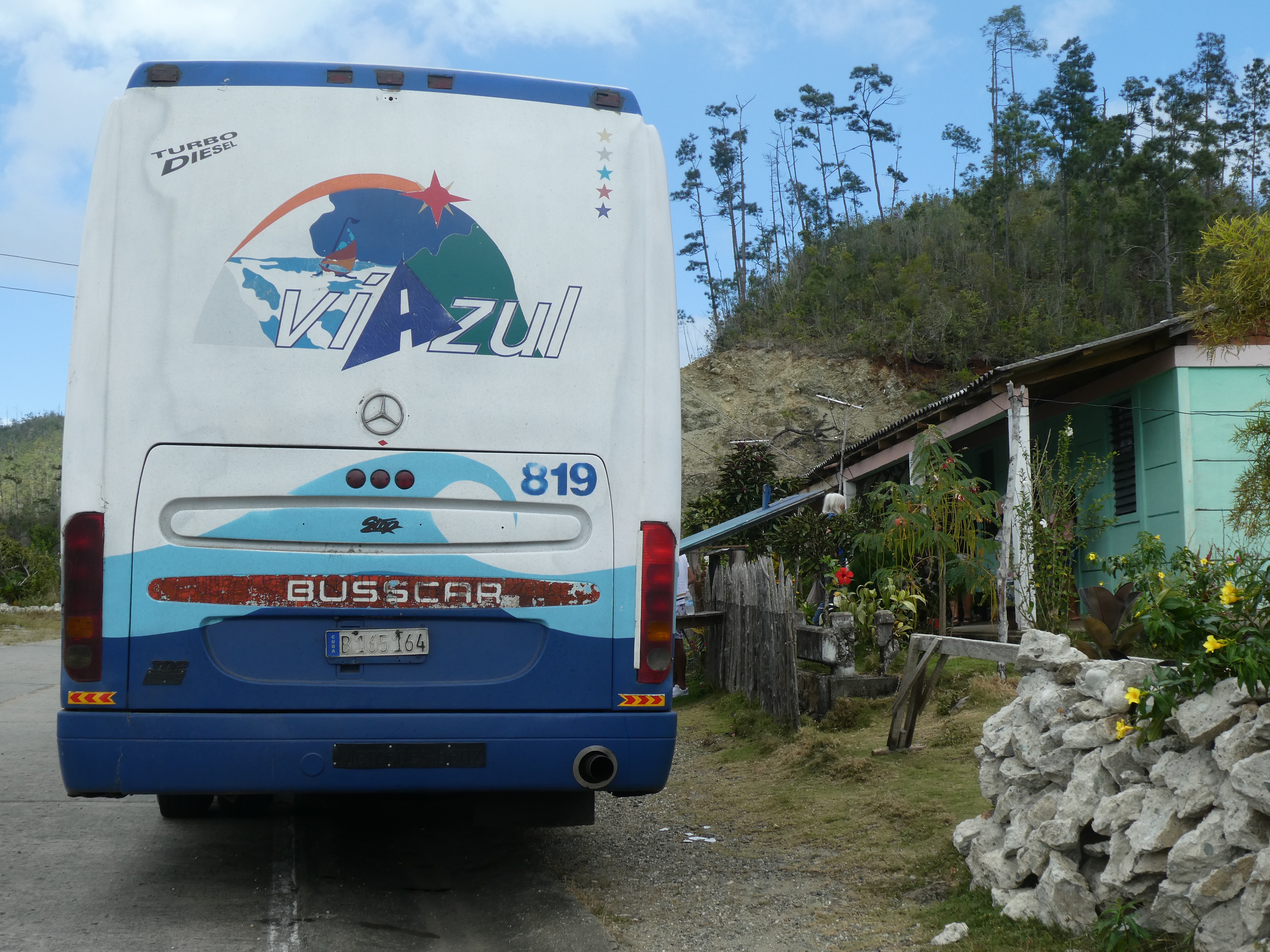 Wer Kuba ein wenig kennt, oder auf der Landkarte unsere Tour verfolgt, wundert sich vielleicht ein wenig über die zurückgelegten Diastanzen. Hier das Geständnis: Wir sind von Marea del Portio mit dem Taxi nach La Mula und von Santiago de Cuba nach Baracoa mit dem ganz normalen Bus gefahren. So vermieden wir einerseits die zerstörte Straße (wir bewunderten unseren Driver und dankten allen Schutzengeln am Ende) und anderseits die Qualen der “ La Farola“.