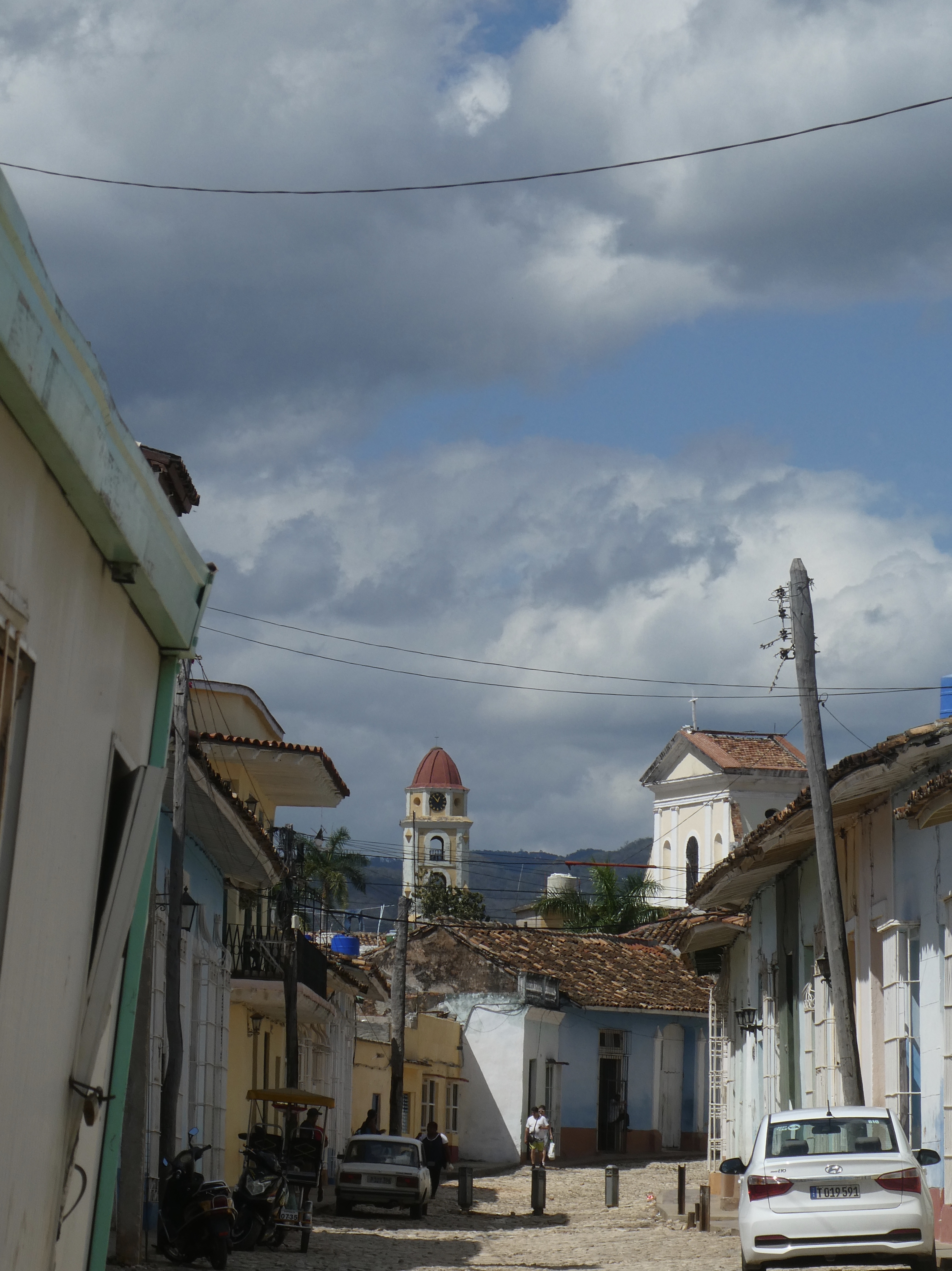 Das kleinere Trinidad – Sancti Spiritus hat uns den ersten Regentag unserer Reise gebracht. Eine Fahrt durch die Berge im Regen. Wenn die Kubaner uns schon immer sehr verwundert beschaut haben mit unseren Rädern, dann taten sie es nun erst recht. Doch irgendwann hat auch der Regen aufgegeben und wir kamen in Trinidad fast wieder trocken an. Fahrrad fahren ist in der Innenstadt unmöglich – das überproportional buckelige Kopfsteinpflaster hindert selbst die Kubaner daran.