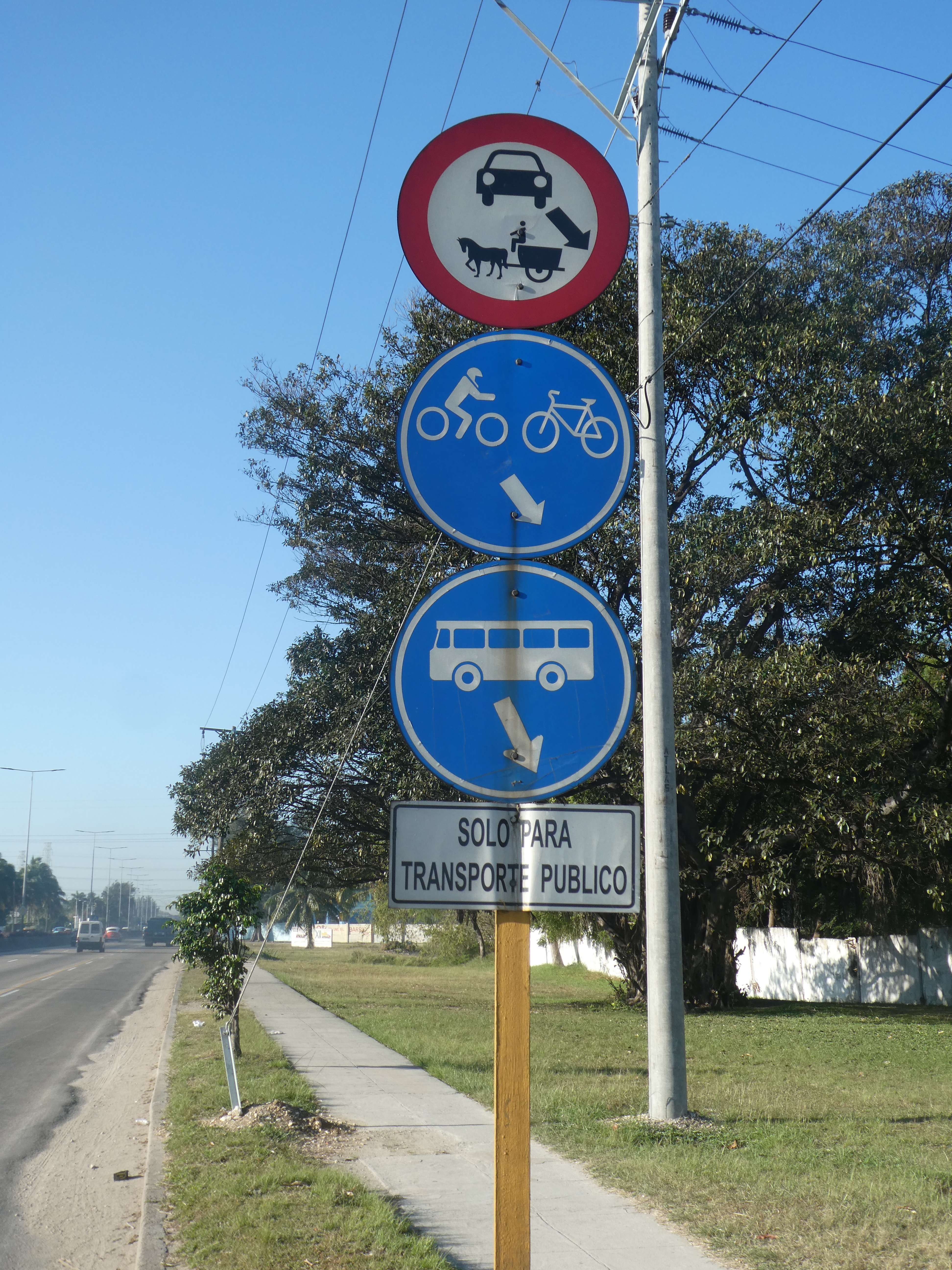 Die Landschaft ist hier sehr grün, es gibt wesentlich mehr Flüsse zu überqueren – bei teilweise schlechten Brückenzuständen (aber überhaupt kein Vergleich zum Osten Kubas) und wir mussten bisher noch nirgends schwimmen. Das Wetter ist um einiges kühler und wir haben am Abend schon mal ein Jäckchen drüber gezogen und Nachts eine Decke übers Laken gelegt. Auch die Infrastruktur ist besser, es gibt sogar Buswartehäuschen mit Linienangaben. Leider dürfen wir Touri’s trotzdem nur Viazul nutzen.