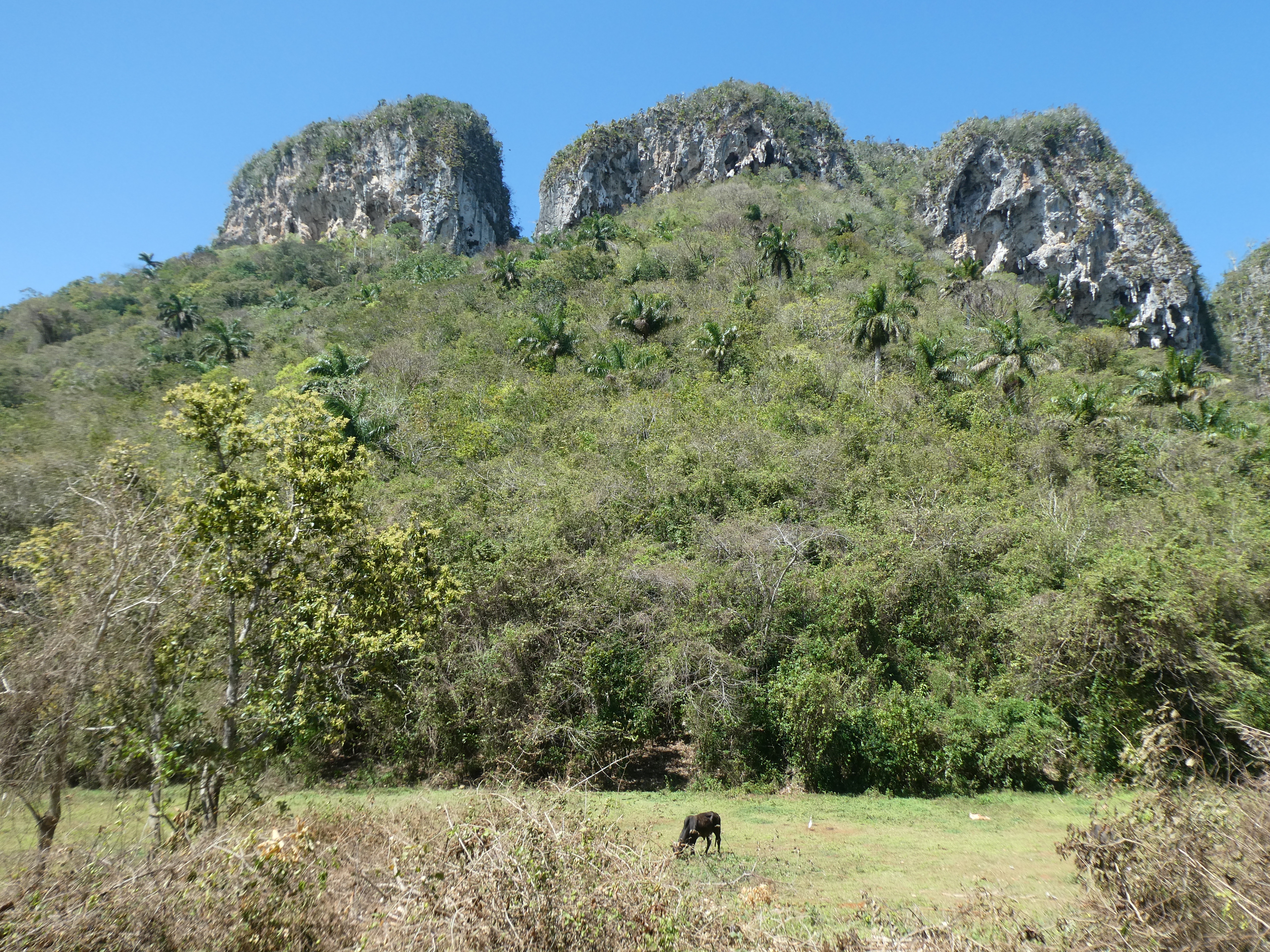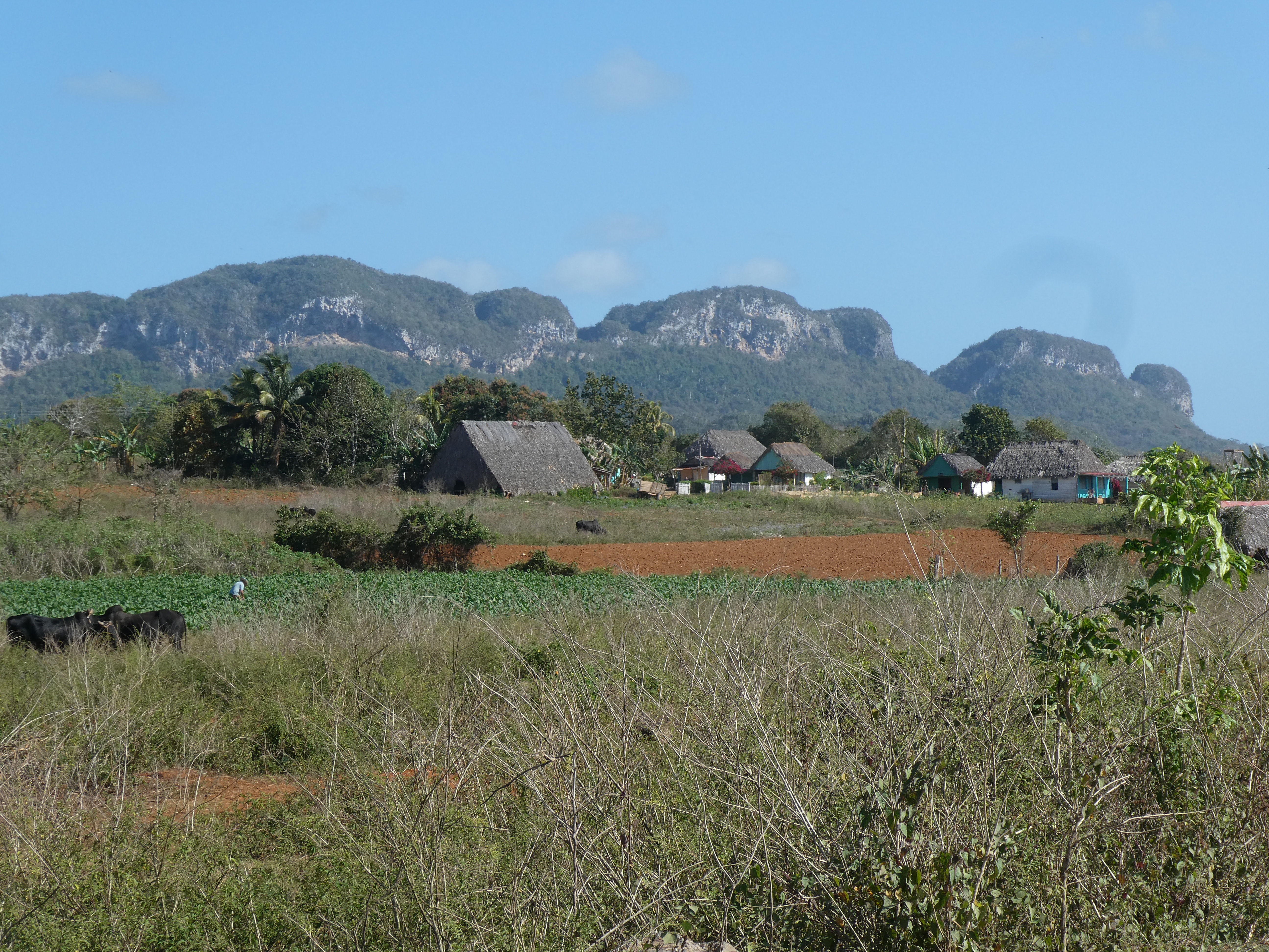 Vinales liegt sehr idyllisch in den Bergen und ist wohl mit Havanna und Trinidad die Adresse in Kuba. In unserem geborgtem Lonely Planet (ein dickes Danke an Rolf — er hat zwar gelitten, aber du bekommst ihn wieder) von 02/16 ist noch die Rede von 300 Casas — inzwischen sind es über 800 (in einer Ortschaft wie ein mittelgroßes Dorf in Deutschland).